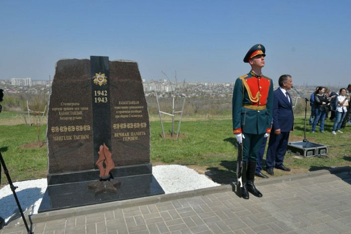 Примечательно, что это событие произошло в юбилейный год, когда отмечается 75-летие победы в Сталинградской битве. Гранитный памятник установлен в честь казахстанских дивизий, Героев Советского Союза из Казахстана, павших смертью храбрых в Сталинградской битве.