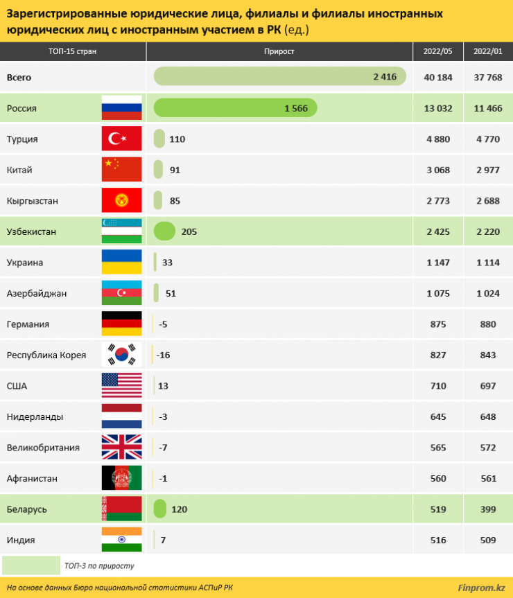 Согласно статистике, количество зарегистрированных юрлиц, филиалов и филиалов иностранных юридических лиц с иностранным участием к концу мая достигло 40,2 тысячи.