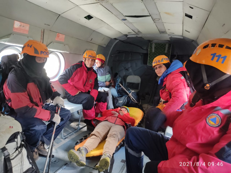 На место выехала группа спасателей РОСО из 8 человек и кинологи. 4 августа они добрались до группы на перевале пика Советов на высоте 3700 метров. Девушку нельзя было доставить вниз на носилках, так как местность вокруг оказалась каменистой, почва осыпалась. Служба спасения города Алматы предоставила авиаборт.