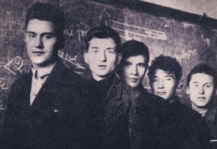 Москва. Динмухамед Кунаев (первый слева) вместе с сокурсниками. Фото kunayev.kz