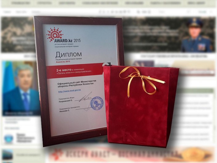 Официальный сайт Минобороны завоевал второе место в Национальной Интернет-Премии AWARD.kz в номинации "Органы власти и самоуправления".