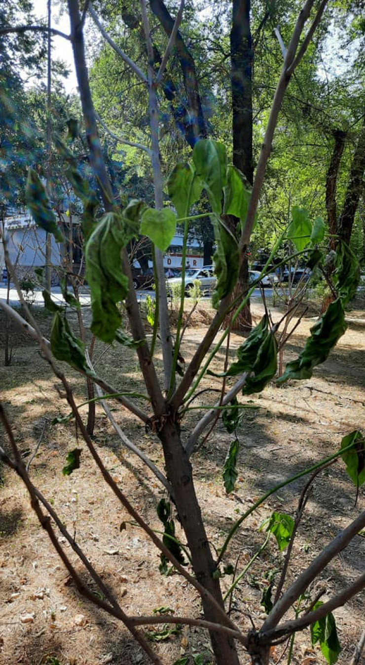 В Алматы саженцы высохли из-за сильной жары. Алматинцы публикуют фотографии погибших деревьев в социальных сетях, передает корреспондент Tengrinews.kz.