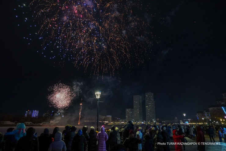 Вместе с другими зрителями за салютом наблюдал фотограф Tengrinews.kz Турар Казангапов.
