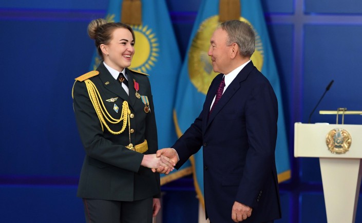 В Акорде в канун Дня защитника Отечества и Дня Победы состоялась церемония вручения высших воинских и специальных званий, классных чинов, сообщает корреспондент Tengrinews.kz. Церемония награждения проходила с участием Нурсултана Назарбаева.
