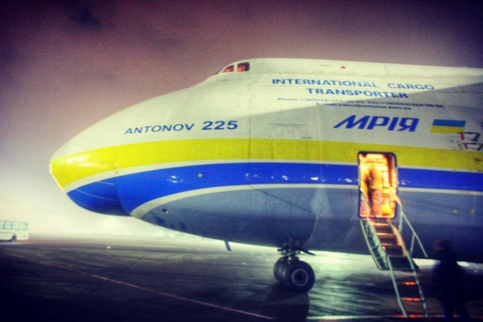 Это вторая посадка уникального самолета в аэропорту Алматы. 13 декабря "Мрия" приземлилась на дозаправку по пути из Германии в Китай.