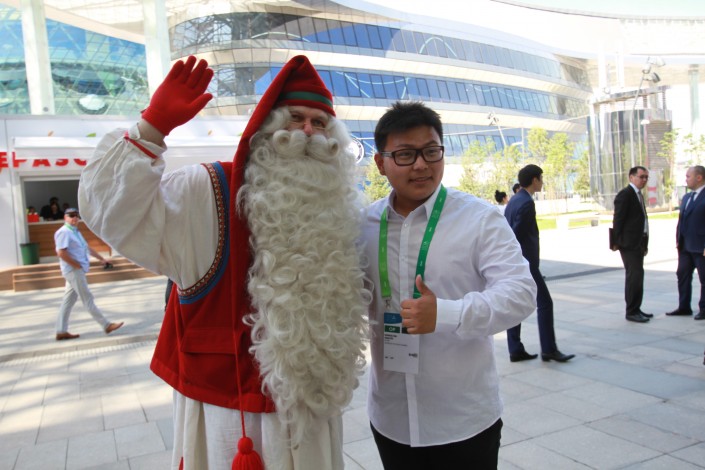 Йоулупукки, так Санту-Клауса называют на родине, прибыл в Астану на открытие Национального Дня Финляндии в рамках EXPO-2017. Прибывший из холодной Финляндии рождественский дед по достоинству оценил жаркую погоду в столице Казахстана.