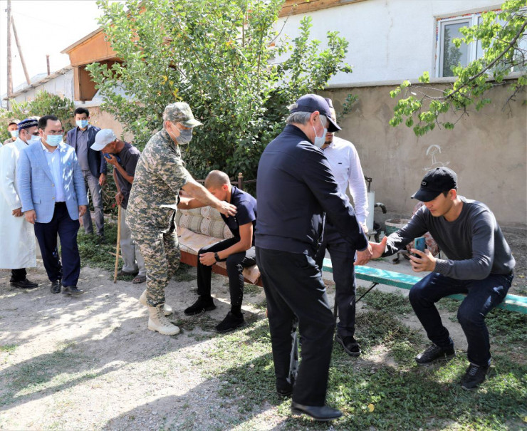 Сапарбаев и Ермекбаев навестили семьи погибших при взрывах в Жамбылской области
