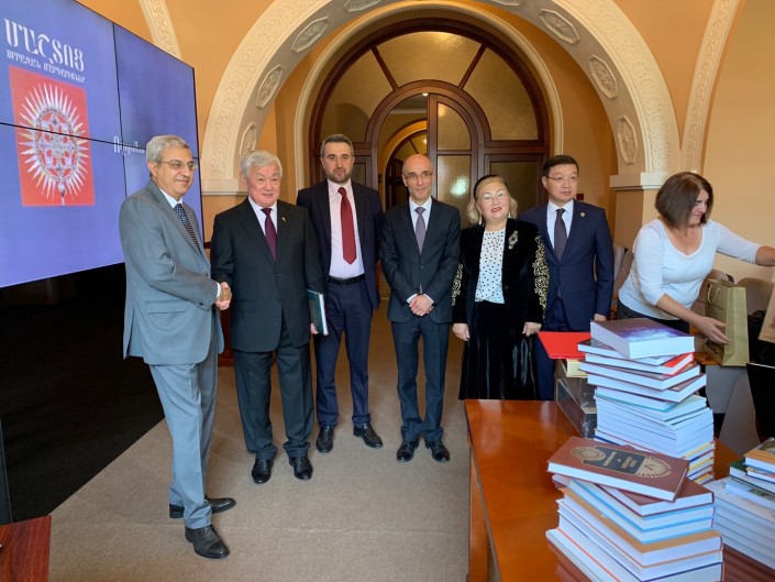 В Ереванском госуниверситете Сапарбаев пообщался со студентами, изучающими культуру и традиции казахского народа, а также подарил центру 50 книг на казахском, русском и английском языках. В их числе произведения Абая, Ауэзова, Кудайбердыулы, Кекилбаева, Жубанова и других.