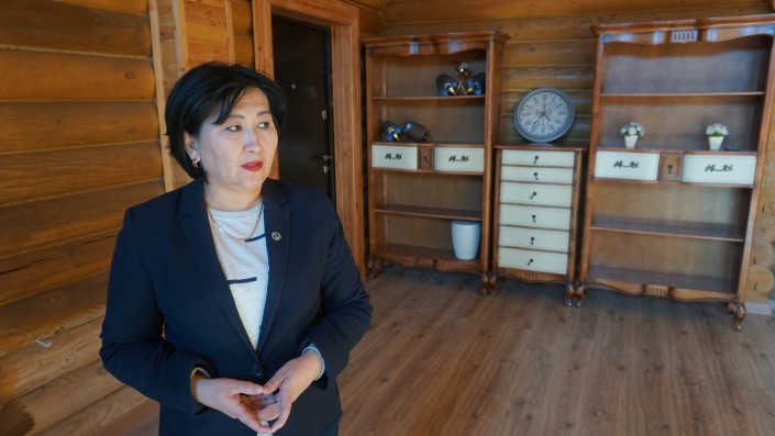 Руководитель отдела культуры и развития языков Айгуль Суюнжанова и будет в дальнейшем курировать работу Дома культуры. "Сруб останется, но дизайн мы хотим поменять. Но все будет зависеть от финансирования, сколько нам выделят денег из бюджета", - рассказала представитель акимата, показывая дом.