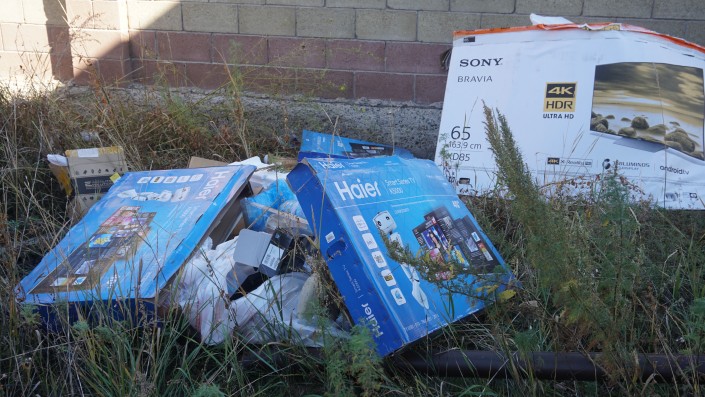 С территории дома еще не вывезли весь мусор. Судя по этим коробкам, в доме было много техники, но сейчас никто не знает, где она.