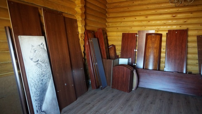 "Эти шкафы разобранные стояли, где-то лежали. Или кто-то что-то искал, или специально все сломали. Из дома мы столько мусора вынесли, чучела всякие, оленьи рога даже были. Все вывезли на свалку. Все более менее уцелевшее осталось тут. Если шкафы можно будет собрать, то оставим. Будет куда одежду вешать, где принадлежности различные хранить", - рассказывает Айгуль Суюнжанова.