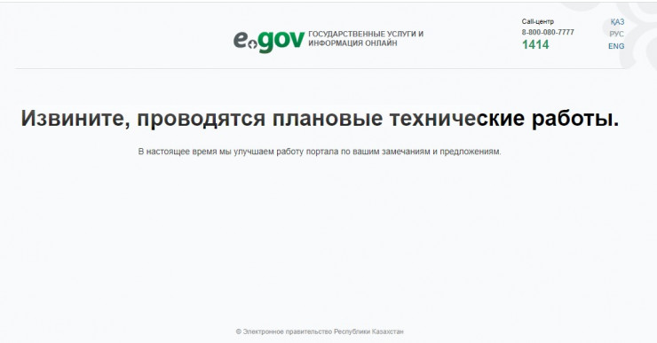 Сайт eGov.kz недоступен из-за технических работ