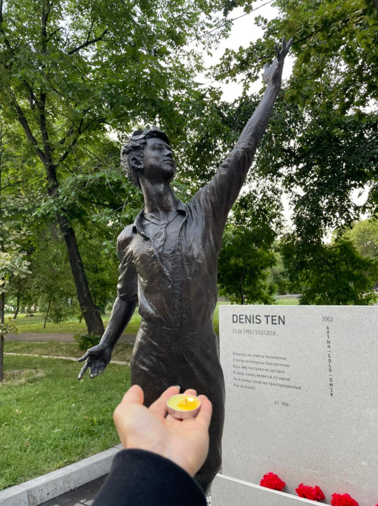 В Алматы на месте убийства Дениса Тена всегда вывешены плакаты и цветы. Спустя три года горожане по-прежнему приходят сюда, чтобы скорбеть о смерти спортсмена, вспоминать его достижения как в спорте, так и в творчестве.