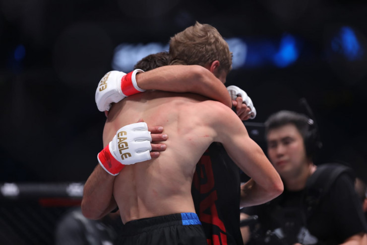Вторую пятиминутку бойцы начали в стойке, но россиянин поймал казахстанца и вновь перевел бой в партер. В итоге соперники прошли всю дистанцию, по итогам которой судьи отдали победу Гаджиагаеву.