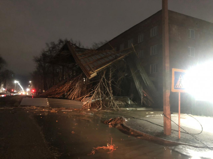 "Кровлю из профлиста сорвало на всей площади здания в 1440 квадратных метров. Здание 1980 года постройки, последний раз ремонтировалось в прошлом году", - сообщили в ведомстве.