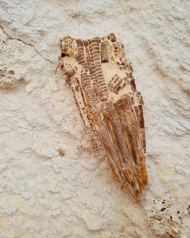 "Через неделю я вернулся к месту находки и залил останки полимерным клеем, чтобы извлечь их и они не рассыпались. Клей не высох, пришлось оставить до этой субботы. Прогноз показал сильный дождь, я боялся, что его размоет, и поехал забрать, несмотря на погоду.
