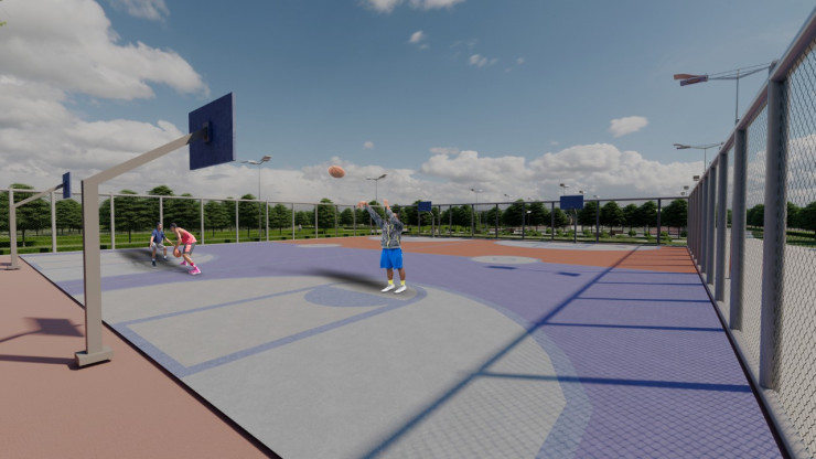 Так как в городе намерены развивать массовый спорт, в парке появятся теннисные корты, баскетбольные площадки, скейтпарки, зоны для пикников с навесами.