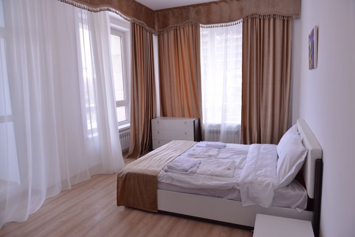 "На данный момент оснащены 40 квартир. Из них половина является класса Gold, остальные - класса Silver. В ближайшее время думаем разделить на три класса A, В, С (...). В основном здесь будут проживать комиссары (...). Цены и скидки согласовываем сейчас. Брали стоимость ниже, чем цены в Астане. Допустим, мы взяли 60-70 тысяч тенге за пятизвездочный отель. Этот номер будет стоить около 40-50 тысяч тенге в день. В основном сюда заезжают гости на месяц, полгода", - рассказал журналистам Галымжан Карымсаков.