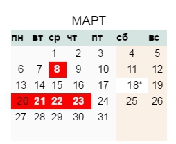Один из выходных дней придется на среду, 8 марта. Еще три - на Наурыз. В честь самого теплого весеннего праздника мы отдохнем 21, 22 и 23 марта.