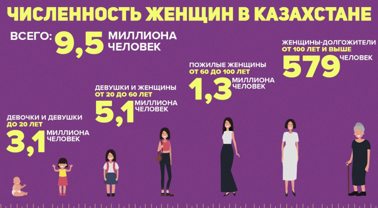 При этом в Казахстане живет больше трех миллионов девочек и девушек до 20 лет. А вот работоспособных женщин в стране аж пять миллионов.