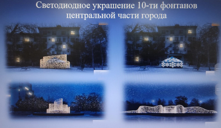 В центральной части города украсят светодиодами 10 фонтанов, обойдется это в 3,7 миллиона тенге. Также заключен договор с подрядной организацией на строительство ледового городка на сумму 16,8 миллиона тенге. Также по инициативе городских подрядных организаций в микрорайонах Юбилейный, Аэропорт, КСК, КЖБИ и в поселке Амангельды будут построены 5 ледовых горок.