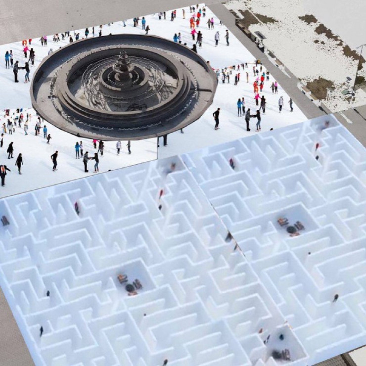 Вокруг существующего фонтанного комплекса будет залит каток, для посетителей будет работать прокат коньков, зимнее обустройство данной территории будет создано для организации активного отдыха горожан на свежем воздухе в дневное и вечернее время суток, атмосферу будет создавать также специальная тематическая подсветка. Ближе к зданию театра имени Абая появится ледовый лабиринт. К середине декабря в самом центре площади установят красочную новогоднюю елку. На площади между улицами Мухамедханова и Козбагарова будет создано зимнее общественное пространство – зона променада. Через зону фуд-кортов можно будет пройти к ледовому городку.