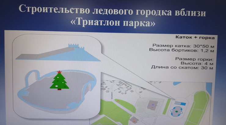 К радости детворы в парке строят восемь горок. На центральном озере можно будет покататься на снегоходе. В парке Майкудука также будет организован каток размером 50 х 50 м, построят две горки.