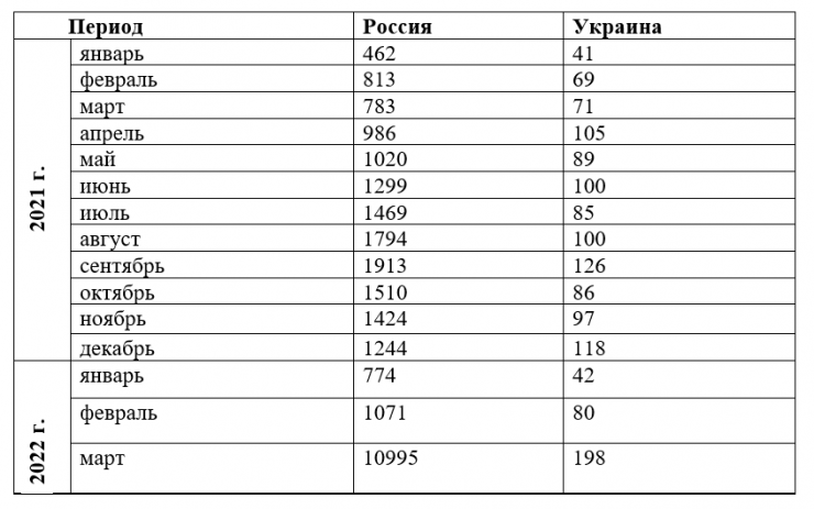 Что касается граждан Украины, то, по данным МВД, здесь рост был незначительным. В 2021 году всего 1087 украинцев получили ИИН в Казахстане. В месяц регистрировалось от 70 до 128 человек. В этом году цифра незначительно выросла. В январе ИИН получили 42 украинца, в феврале - 80, а в марте - 198 человек.
