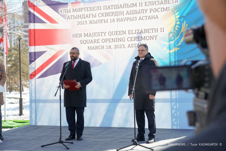 На презентации сквера, названного в честь королевы Елизаветы II, присутствовал министр иностранных дел Великобритании Джеймс Клеверли. Он сегодня прибыл в столицу Казахстана.