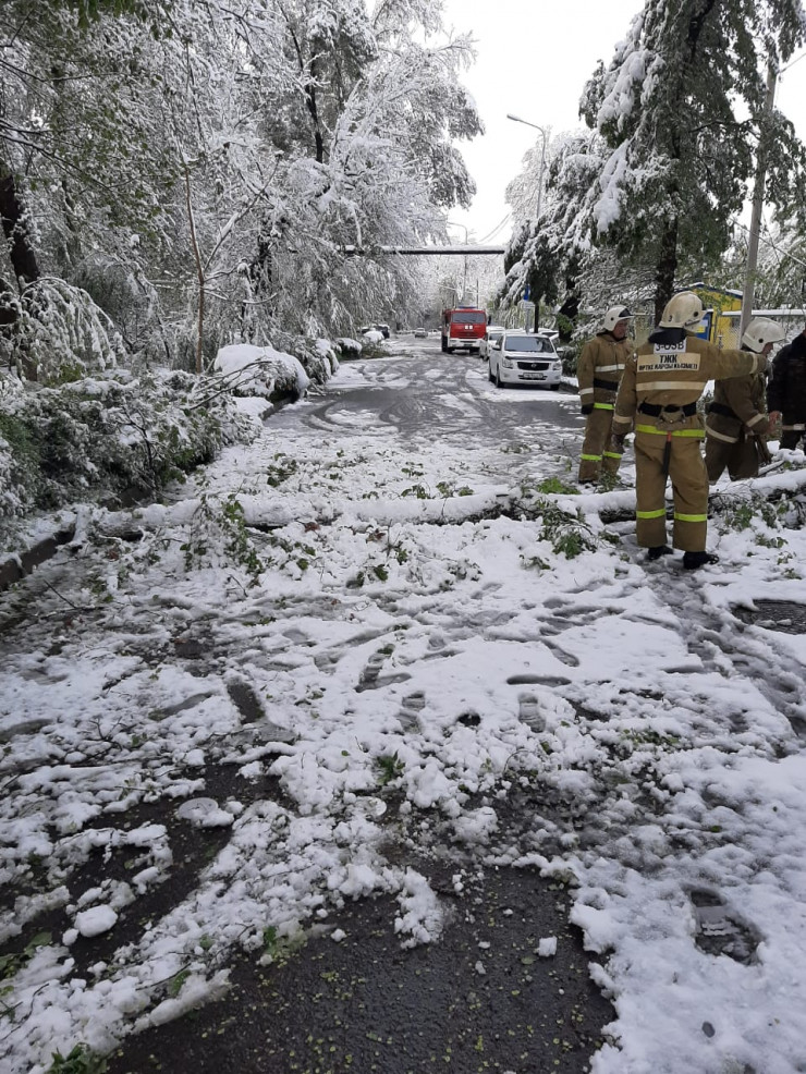 "С 06.30 часов произошло отключение электроснабжения в четырех районах города, всего около 8000 абонентов. Аварийные службы проводят восстановительные работы, силами ДЧС ведется очистка улиц и автодорог от упавших деревьев. Метеообстановка на данный момент: осадков нет, температура воздуха - плюс три градуса, безветренно", - сообщили в пресс-службе ДЧС Шымкента.