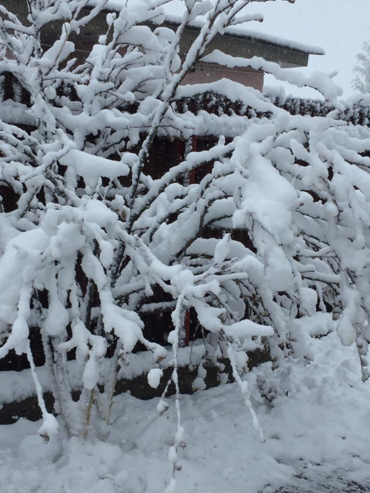 В Алматы ночью шел мелкий снег, который сразу же таял. Однако сейчас снегопад усиливается, в некоторых районах он постепенно покрывает землю и цветущую растительность.