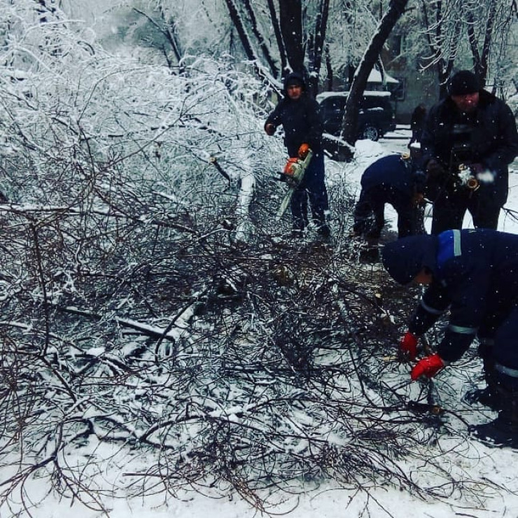 В вечернее и ночное время коммунальные службы вывезут снег с дорог на полигоны. Работа по вывозу упавших веток и деревьев велась целый день. В службу спасения поступило 115 таких сообщений.