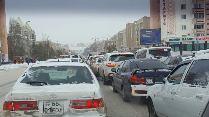 Снегопад вызвал в Астане заторы на дорогах Фото©Асель Сатаева