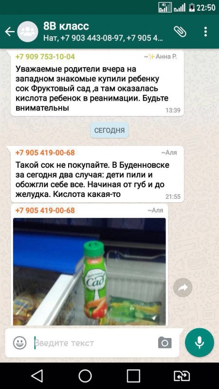 Напомним, после рассылки в WhatsApp о фруктовом соке с "кислотой" информацию из интернет-рассылок проверили уполномоченные органы.