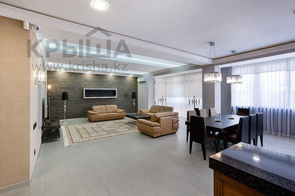 Третье место досталось 10-комнатным апартаментам площадью 500 квадратных метров за 900 миллионов тенге. Пентхаус расположен в двадцатиэтажке, имеет шикарную кухню-студию в 80 квадратных метров, террасу площадью восемь соток, несколько балконов.