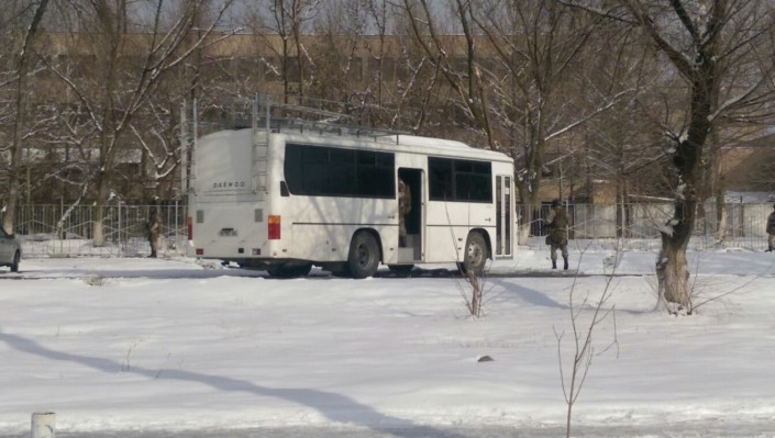 В этом автобусе находились сотрудники спецподразделения. Фото Tengrinews.kz