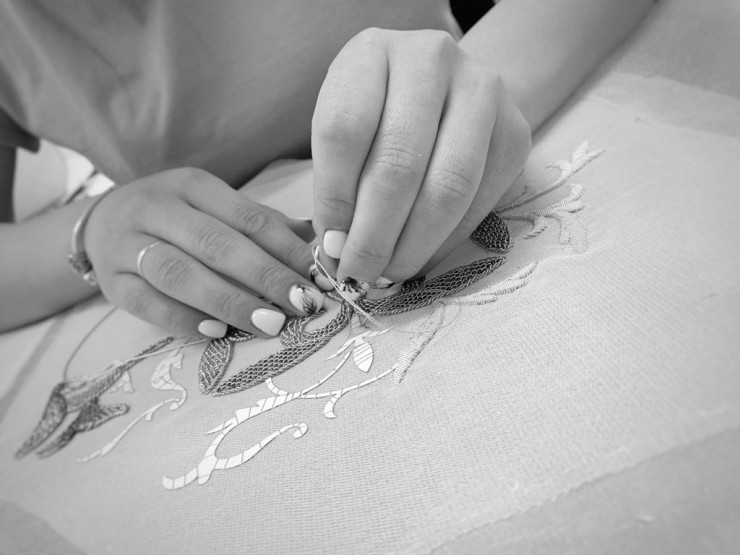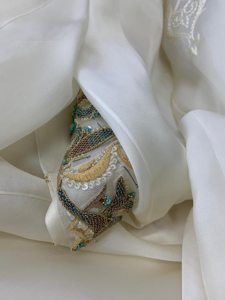 "Сначала идет подборка материалов, делаются многочисленные образцы. Даже во время пошива бывают моменты, когда все может поменяться на 180 градусов, и для этого нужно время. Для полного удовлетворения хотелось бы больше времени. Конечно, моя команда сработала на отлично. Были и бессонные ночи, так как орнаменты нужно было вышивать вручную, все должно было быть идеально", - отметила Виолетта.
