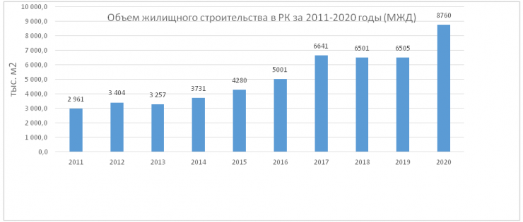 За этот же период времени с 2011 по 2020 год объем строительства квартир увеличился почти в три раза (с 2,96 до 8,76 миллиона квадратных метров). Серьезный объем строительства запланирован и на 2021 год.