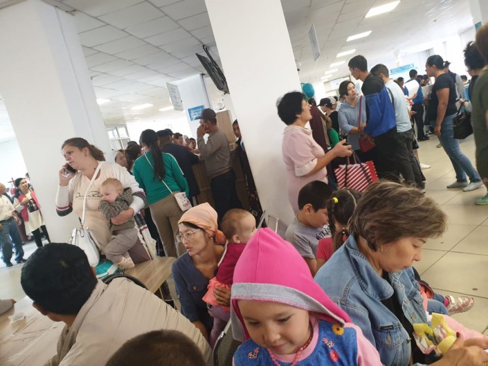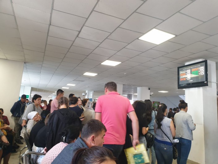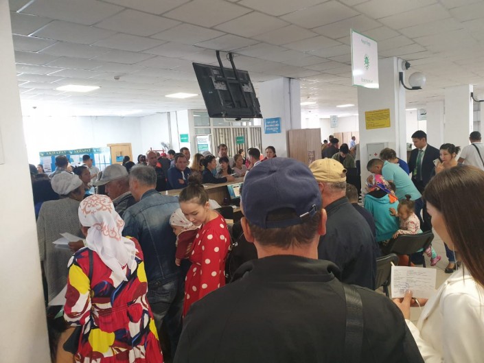 Алматинцы также отмечают, что в ЦОНАх начался ажиотаж и наблюдается столпотворение и длинные очереди.