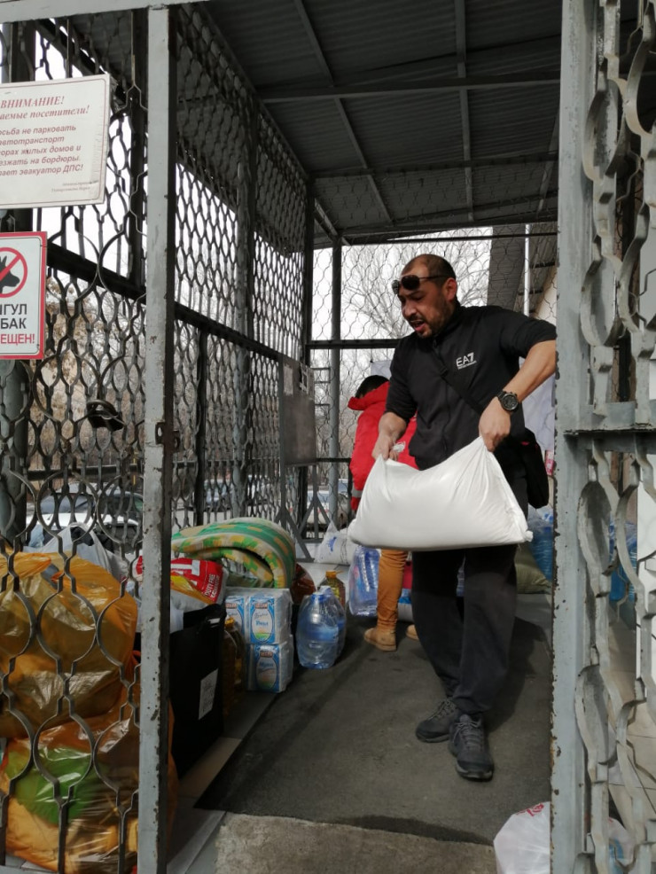 "У нас была договоренность с органами внутренних дел и местным акиматом, поэтому нас ждали. Приехали в штаб, где нам предложили выгрузить все на склад. Но так как мы несем ответственность за то, что нам передают алматинцы, мы везем гумпомощь адресно. Нам сказали, что есть два места, где можно раздать гуманитарную помощь: пограничный переход и мечеть. Выгрузили гуманитарную помощь в мечети, часть раздали", - рассказал Константин Авершин.