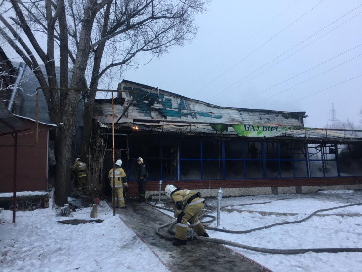 Сообщается, что силы и средства ДЧС города выехали на место в 7.55 утра по повышенному рангу вызова. Открытым пламенем горел спортзал ангарного типа одноэтажного спортивного комплекса "Медина".