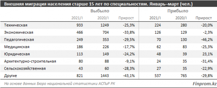 Основной отток трудоспособных людей старше 15 лет традиционно пришелся на специалистов технических специальностей: за три месяца текущего года уехали 933 человека - на 25,3 процента меньше, чем годом ранее. Также страну покинули 466 экономистов, 249 педагогов, 186 медиков, 113 юристов.