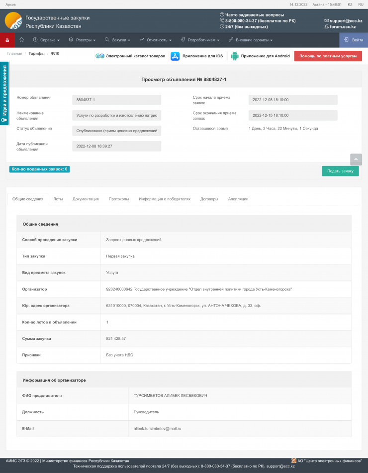 Примечательно, что опубликовано объявление было еще 8 декабря, но заявок от желающих поучаствовать в конкурсе до сих пор нет. Итоги должны быть подведены уже завтра.