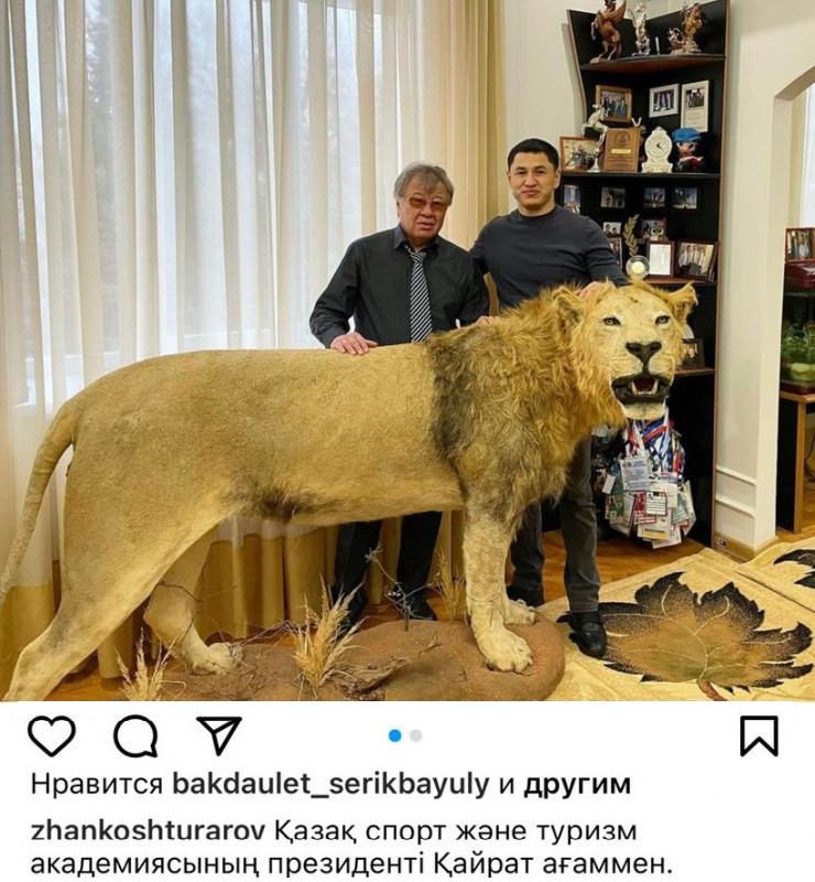 "Студенты должны знать фауну" - академия туризма о шкурах в "кабинете" директора Фото:instagram.com/zhankoshturarov