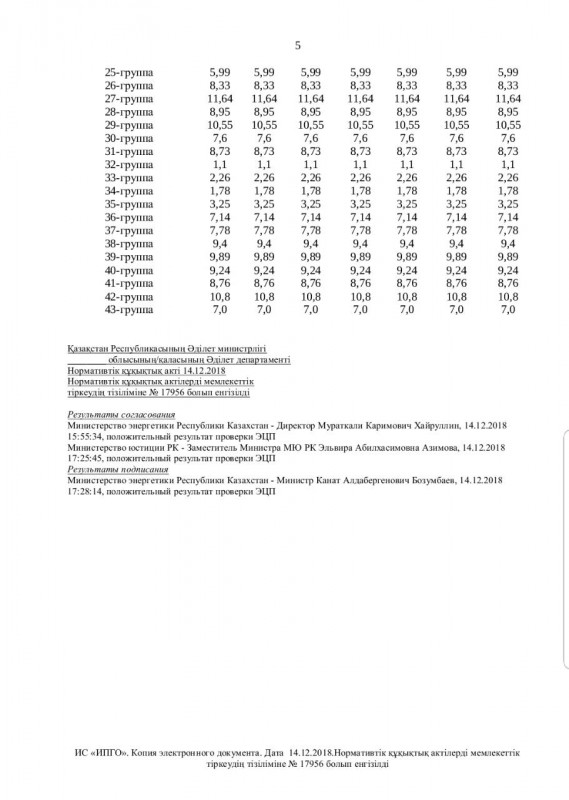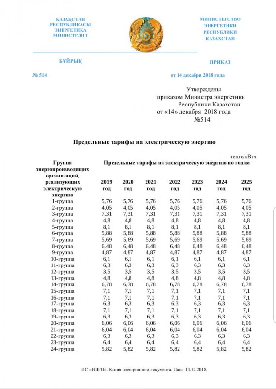 Так, например, предельные тарифы АО "Астана-Энергия" (9-я группа) установлены в размере 4,87 тенге за 1 киловатт-час, АО "Алматинские электрические станции" ТЭЦ-1, -2, -3, Капшагайская ГЭС, Каскад ГЭС (26-я группа) - 8,33, Экибастузская ГРЭС-1 (1-я группа) - 5,76 тенге. С названиями других энергопроизводящих компаний, разделенных на группы, можно ознакомиться по ссылке.