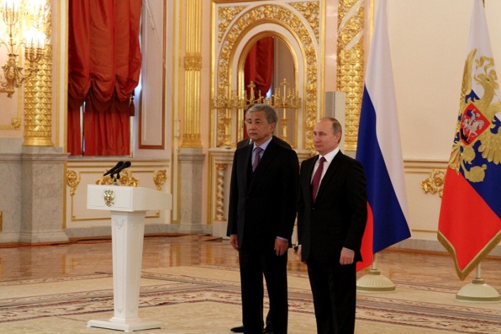 Посол Казахстана в России Имангали Тасмагамбетов вручил верительную грамоту президенту России Владимиру Путину, передает Tengrinews.kz со ссылкой на пресс-службу посольства.