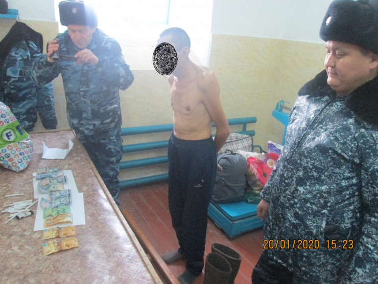 У одного из прибывших в учреждение ОВ 156/1 при досмотре были обнаружены и изъяты деньги. Неоднократно судимый подследственный хитрым способом спрятал в носки 65 100 тенге. По данному факту собран материал, после суда изъятые деньги обратят в доход государства.