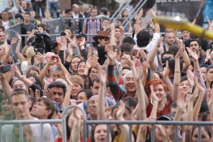 Алматинской публике было хорошо, и она не скупилась на эмоции. Площадь имени Абая перед Дворцом Республики была заполнена.
