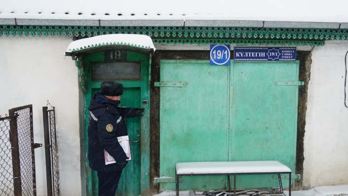 Печь в доме топит 90-летний Леонид Боровик. Сотрудник ДЧС, обходящий дома после недавней  трагедии в Астане, предупредил пенсионеров, что пожар может произойти из-за сушки вещей над печью.