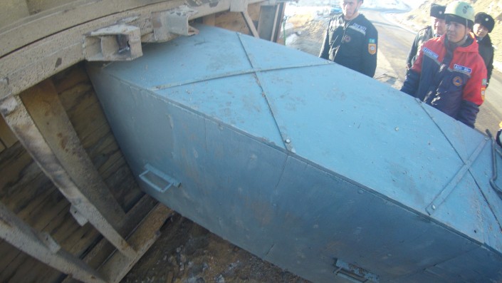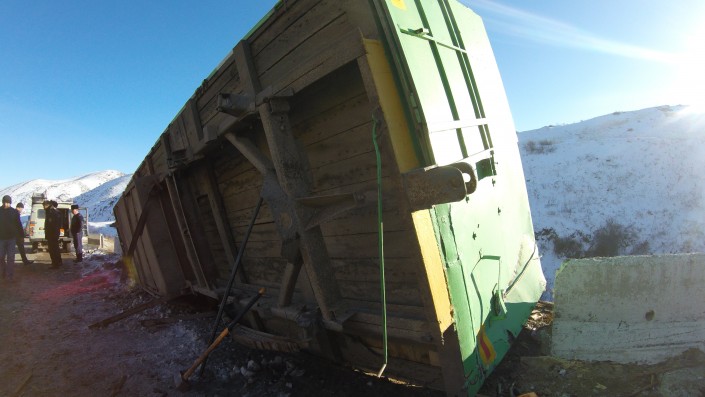 Так, прибыв на место, специалисты сделали разведку, оказалось, что вагон с животным опрокинулся у самого обрыва. Краном невозможно было перенести вагон на трассу, так сложно было его подцепить. Также непросто было разглядеть, что творится внутри, так как прицепной вагон был полностью обшит, а щель в которую можно что-то разглядеть, была только со стороны обрыва. Испуганный тигр метался, раскачивая вагон.